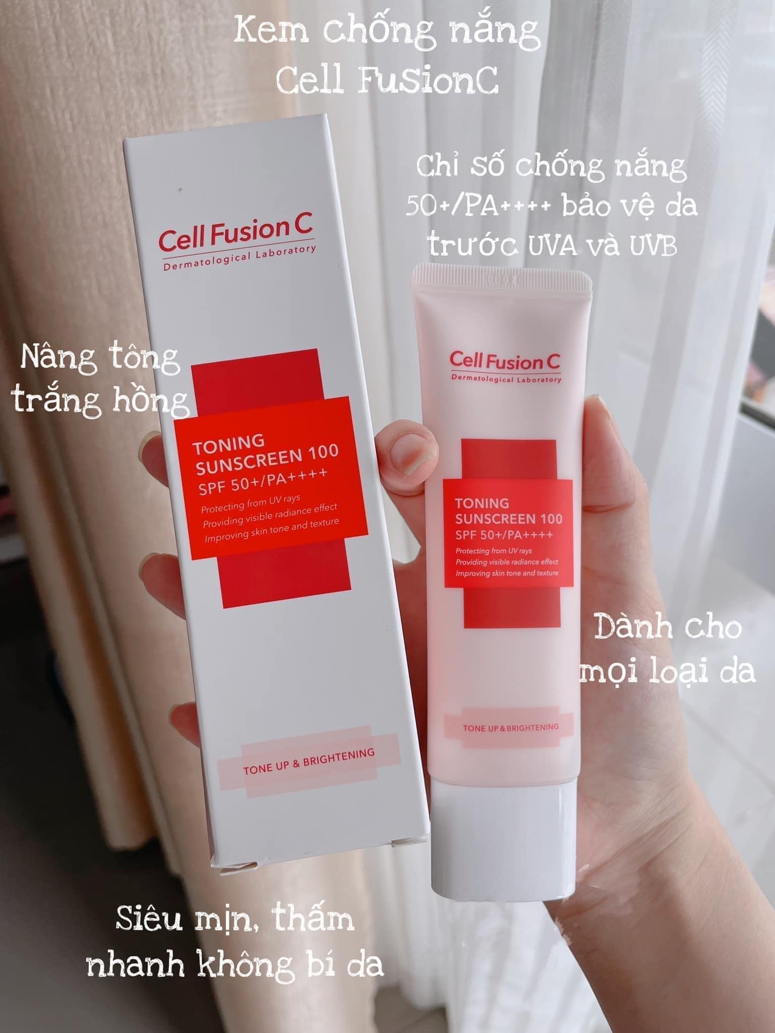 Kem chống nắng và vật dụng không thể thiếu của mỗi cô gái. Đặc biệt với cái nắng nóng oi bức của ngày hè ở Việt Nam, da rất dễ bị tổn thương, cháy sạm đen, khô nhăn, lão hóa. Hiện nay trên thị trường có rất nhiều người yêu thích dòng Kem chống nắng Cell Fusion C Toning Sunscreen của Hàn Quốc. Đây là dòng sản phẩm được chuyên gia da liễu khuyên dùng bởi khả năng bảo vệ da cực tốt. Và thành phần lành tính, an toàn, không gây kích ứng, kể cả làn da sau khi trị laser, lăn kim….