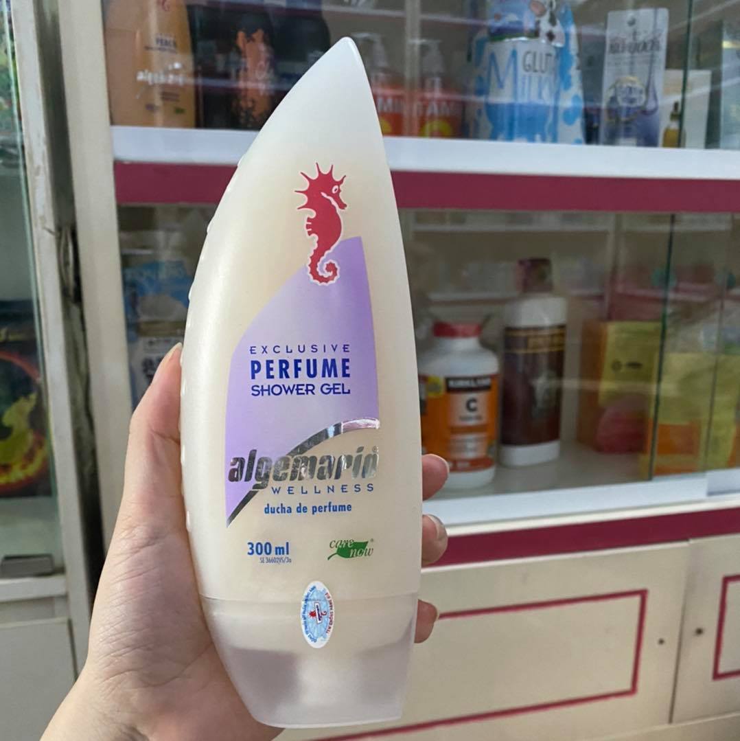 - Sữa tắm cá ngựa 300ml có tên đầy đủ Algemarin Wellness Perfume Shower Gel có xuất sứ từ Đức, sữa tắm cao cấp với mùi nước hoa quý phái, được chiết xuất từ các loài hoa và vitamin thiên nhiên giúp bổ sung protein và các chất dinh dưỡng giúp làn da cân bằng độ ẩm tự nhiên, làm mềm mịn da, chăm sóc da nhẹ nhàng, tăng cường sức sống cho làn da và làm chậm quá trình lão hóa da toàn thân.