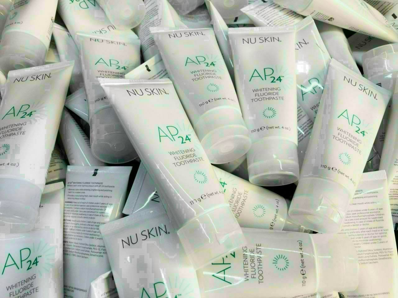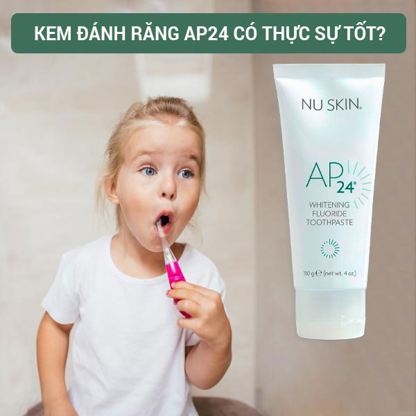 - Kem đánh răng Nuskin AP24 Whitening Fluoride Toothpaste là dòng sản phẩm mới trong lĩnh vực chăm sóc răng miệng hoàn hảo của thương hiệu này. Sản phẩm được chiết xuất 100% từ thảo dược thiên nhiên, sử dụng công nghệ độc quyền AP24 có khả năng đánh bay những mảng bám trên răng và khoang miệng một cách hiệu quả mà không không ăn mòn lớp men răng, giúp răng bạn trắng hơn, có hơi thở thơm mát và hết đau nhức chỉ trong những lần đầu sử dụng.