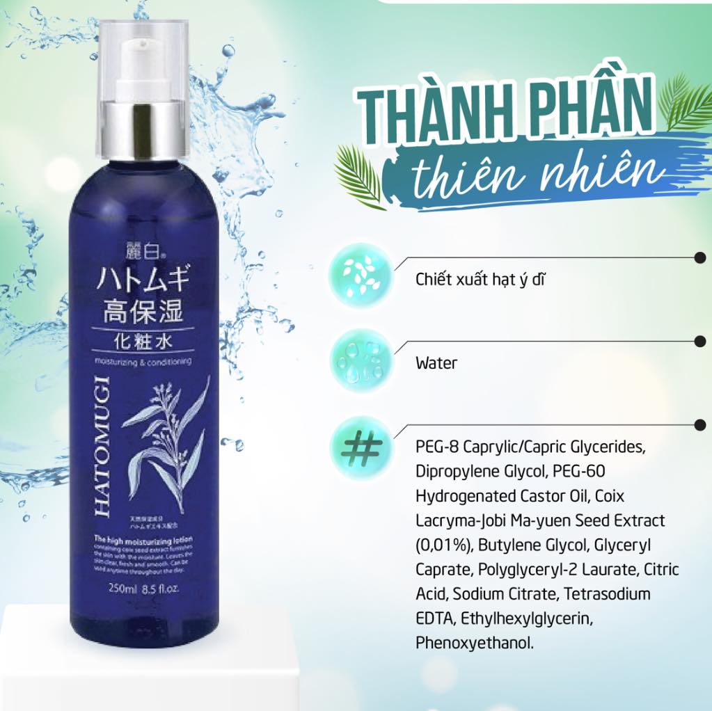 Thành phần chính của nước hoa hồng dưỡng ẩm hatomugi high moisturizing lotion:
