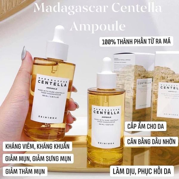 - Tinh Chất Rau Má Hỗ Trợ Giảm Mụn, Phục Hồi Da Skin1004 Madagascar Centella Ampoule là dòng sản phẩm bán chạy nhất của thương hiệu chăm sóc da Skin1004 đến từ Hàn Quốc, đoạt giải thưởng Best of Beauty Award 2019 Winner của tạp chí Female Daily. Sản phẩm chứa chiết xuất từ rau má giúp làm dịu da, giảm sưng viêm mụn, hỗ trợ phục hồi da và chữa lành các thương tổn do mụn hoặc kích ứng gây ra, tái tạo làn da mới tươi sáng và mịn màng hơn,