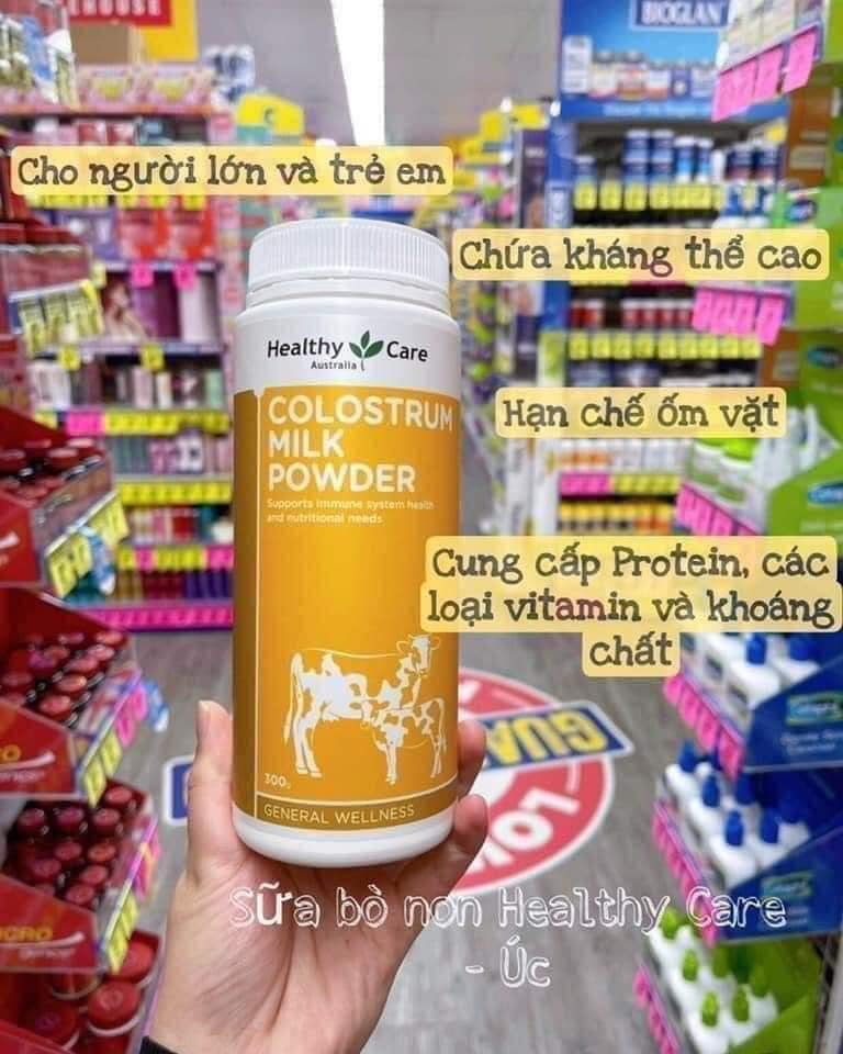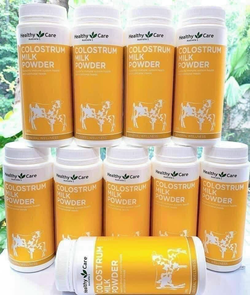+ Sữa non dạng bột của Healthy Care giàu IgG, protein, canxi, natri và vitamin.