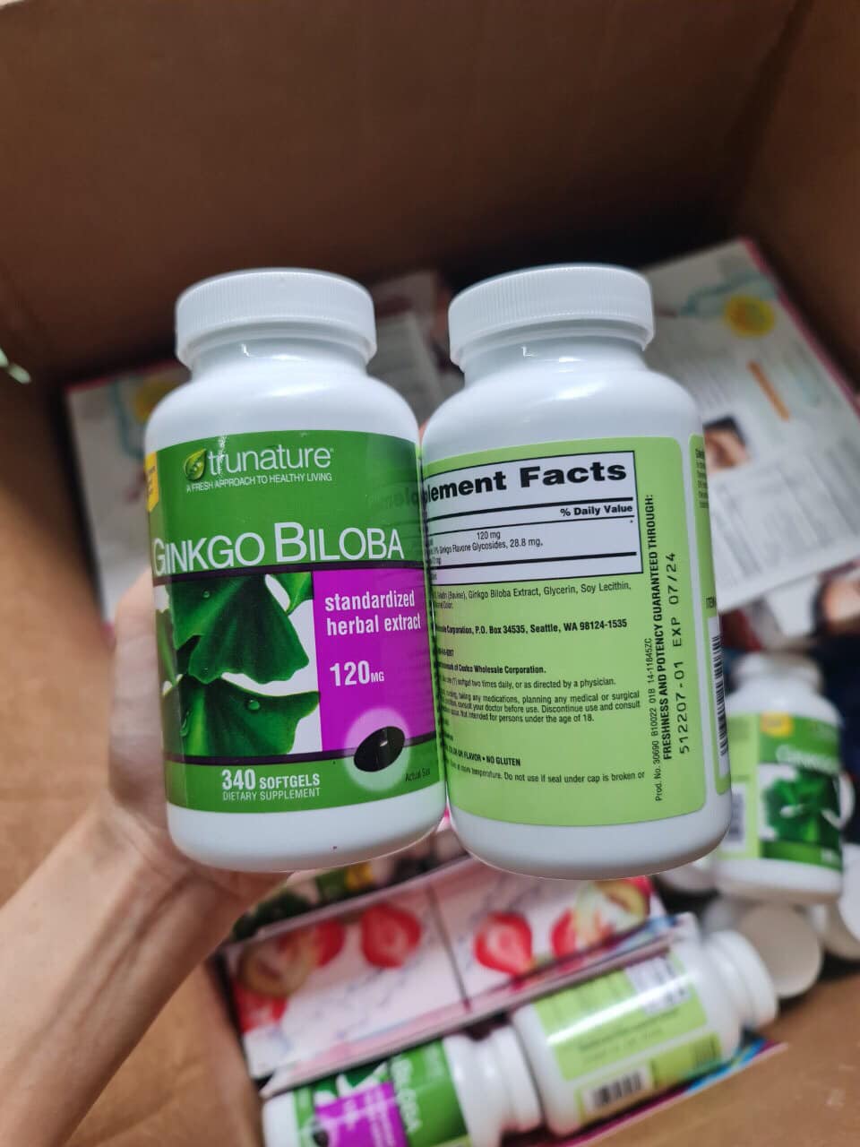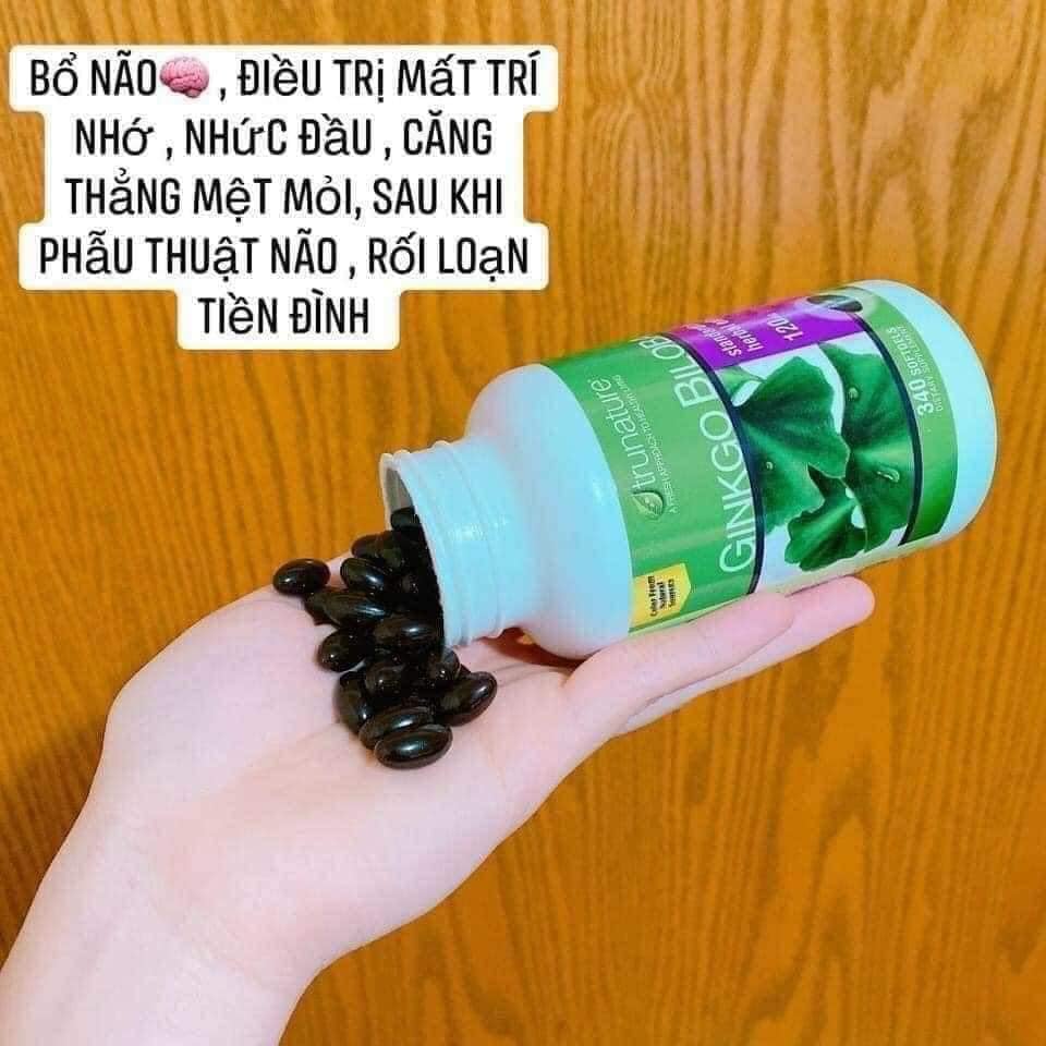 - Viên uống Ginkgo Biloba 120mg là thực phẩm chức năng được nhiều người tin dùng, bổ não Trunature Ginkgo Biloba 340 của mỹ hoạt động như một chất chống oxi hóa, có chứa flavone glycoside và terpene giúp duy trì máu huyết chảy về não nhằm tăng độ minh mẫn, và được sử dụng chủ yếu như là các chất làm tăng trí nhớ và sự chú ý, cũng như là tác nhân chống chóng mặt.