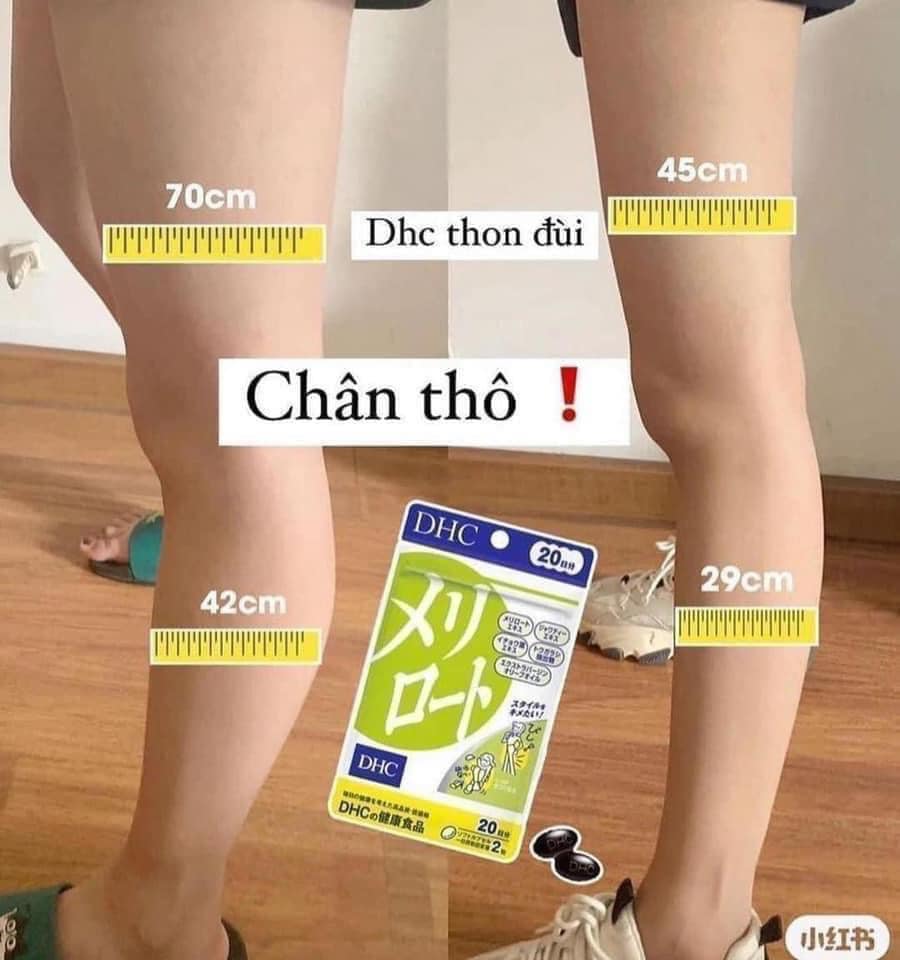 Viên uống DHC thon gọn đùi, giảm phù chân, giảm sưng mắt Melilot giúp lưu thông huyết mạch đồng thời đốt cháy mỡ thừa, cho đôi chân thon gọn, săn chắc. Thích hợp cho những người thường xuyên mang giày cao gót, di chuyển hoặc phải làm việc trong tư thế ngồi hoặc đứng quá lâu trong ngày.